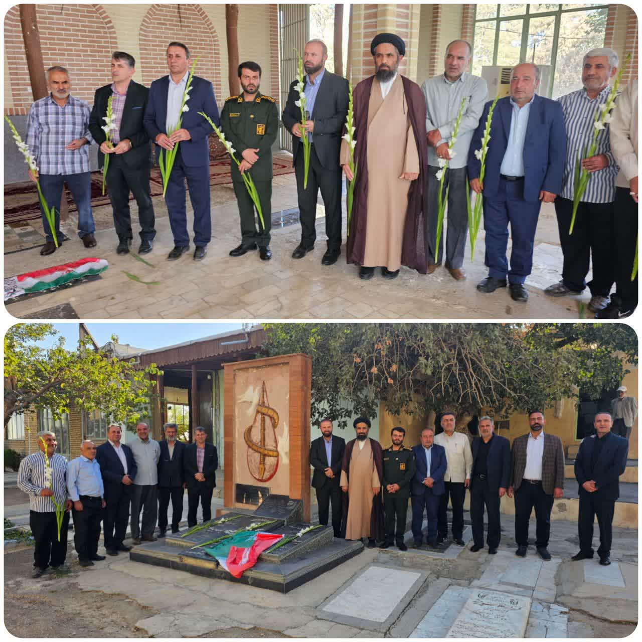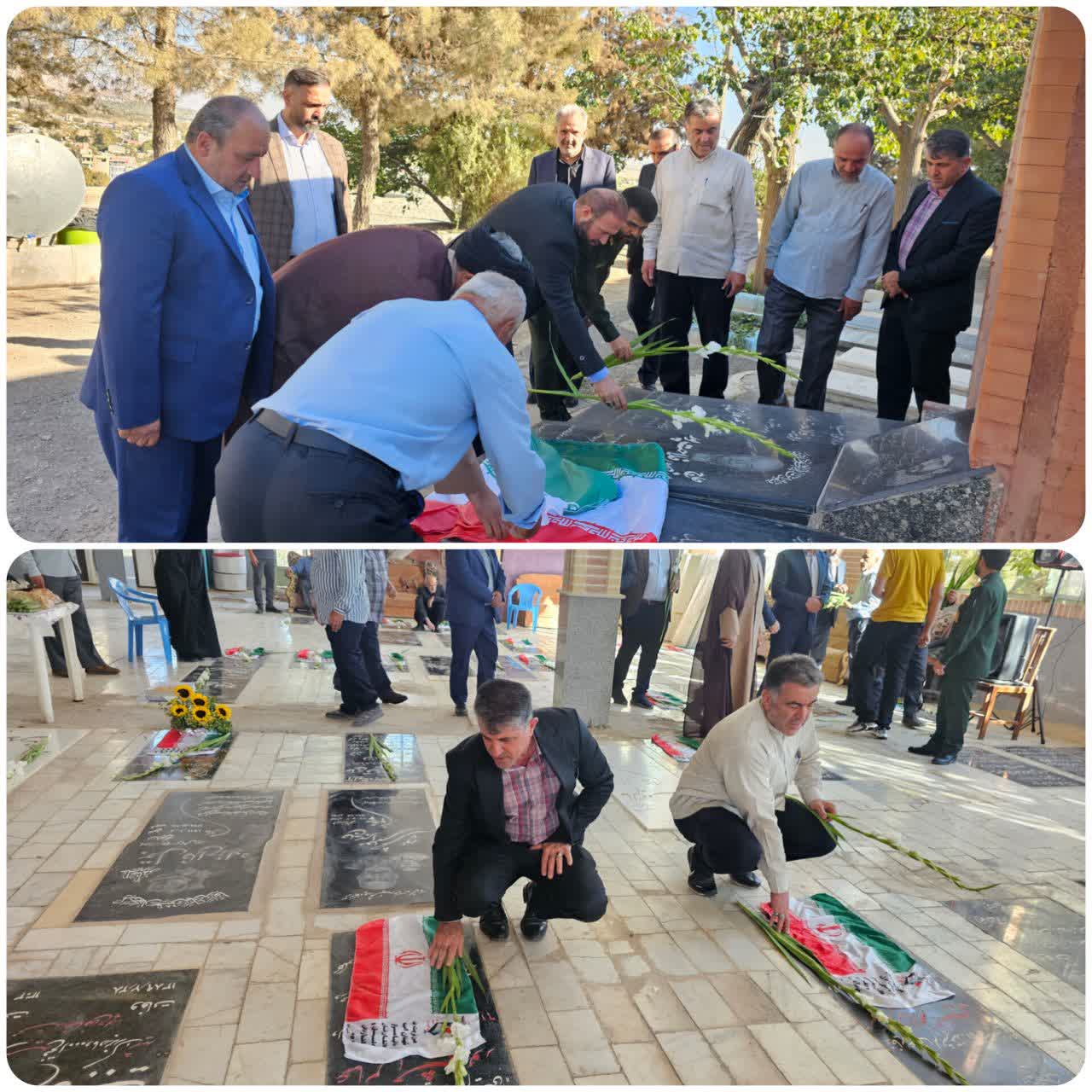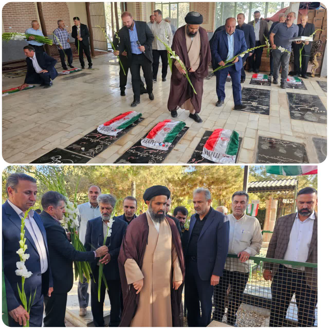 🔹این آئین معنوی با حضور حجت‌الاسلام والمسلمین افتخاری امام جمعه محترم ،شهردار رئیس و اعضای شورای اسلامی شهر ،فرمانده حوزه 617 حمزه سیدالشهدا و بخشدار، و سایر مسئولین شهری و شهرستانی ، خانواده معظم شهدا و مردم شهید پرور شهر با خواندن فاتحه ، نثار شاخه های گل و عطر افشانی بر قبور مطهر شهیدان بار دیگر با آرمان های انقلاب اسلامی و راه پر افتخار شهیدان تجدید پیمان کردند